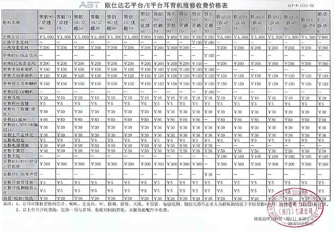 欧仕达芯平台E平台耳背机维修收费价格表